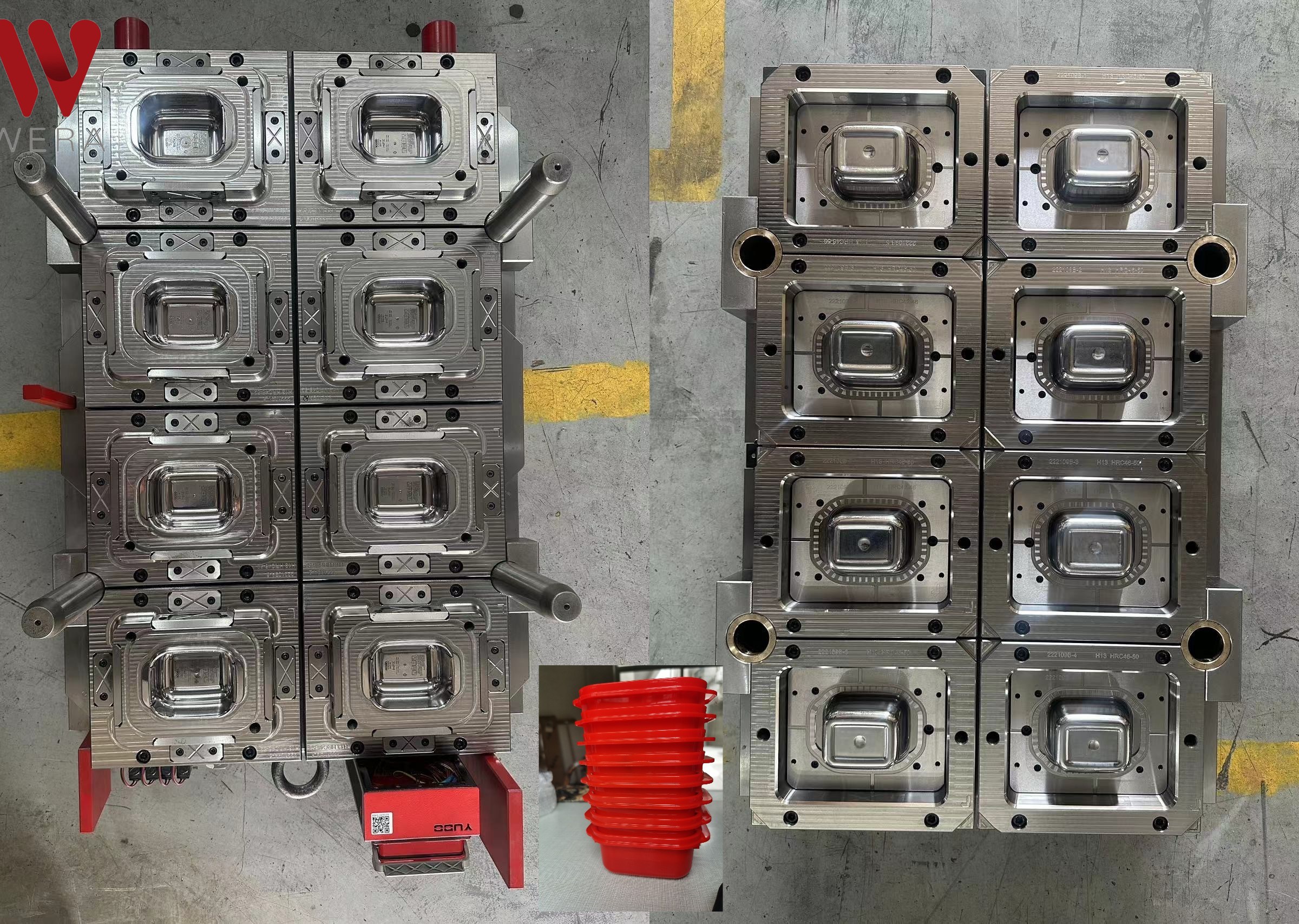 Microwave container mould with 8 cavities, mould suitable for mass production, made with high quality steel to ensure long mold life. valve gate injection make the perfect injection.